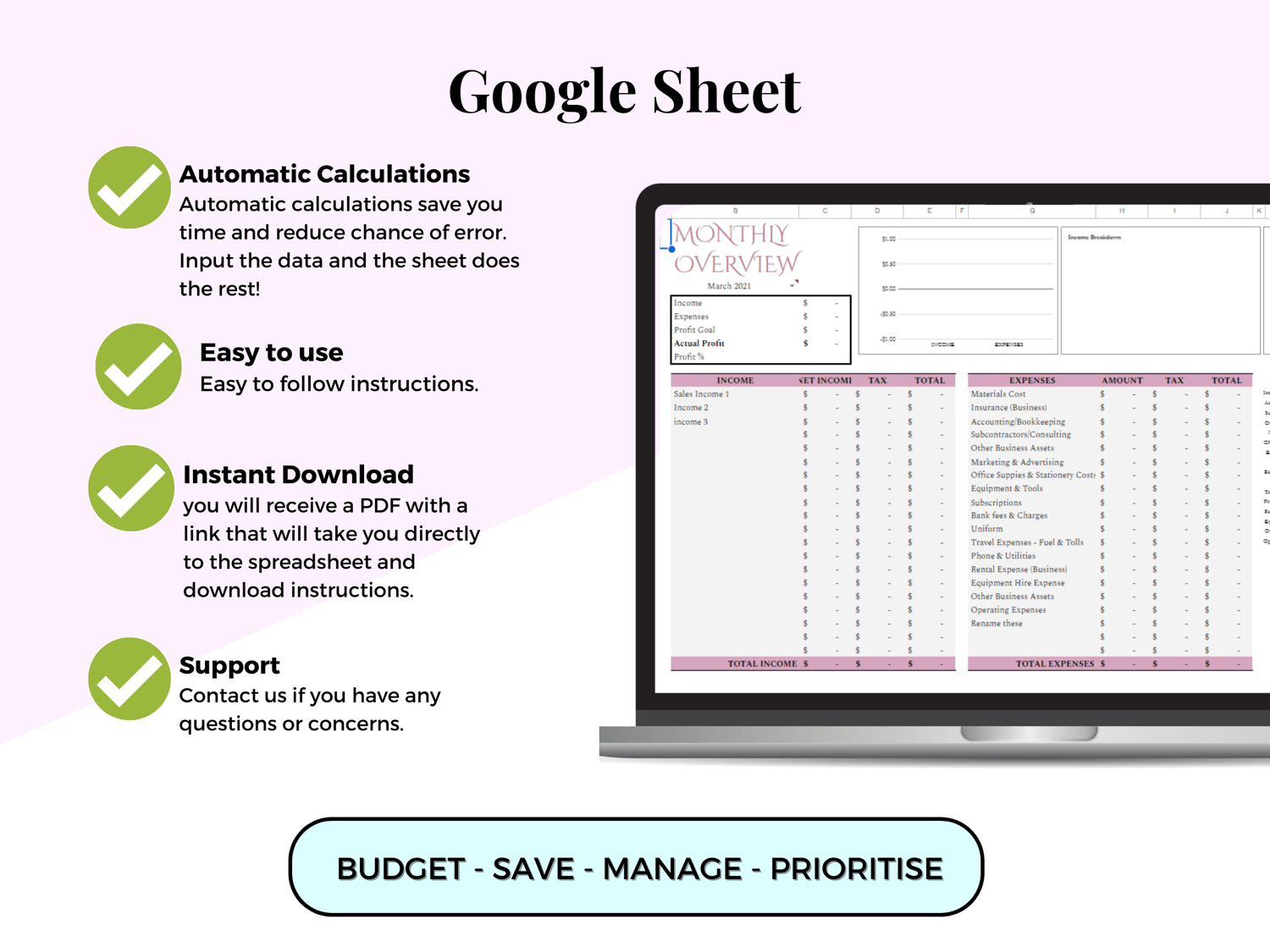 - A comprehensive template designed to manage your business income and expenses